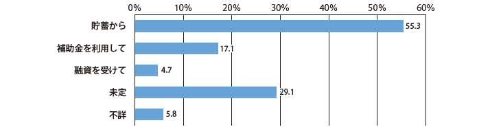 図2のアンケート結果では、「貯蓄から捻出する」が55%、「融資を受けて」は4.7%、各自治體が上限を設けて行っている「補助金の利用」は17.1%に留まりました。各自治體は、もう少し積極的に広報を行ったほうがよいのかもしれません。