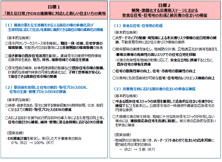 フォーメーション)の進展等に対応した新しい住まい方の実現」と目標2「頻発?激甚化する災害
