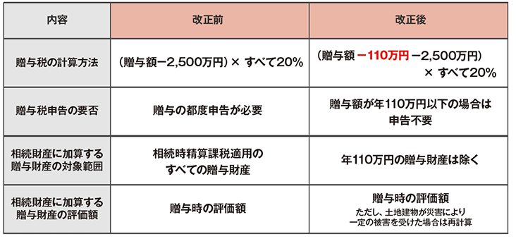 図4:相続時精算課稅制度の見直し 改正前後の比較表
