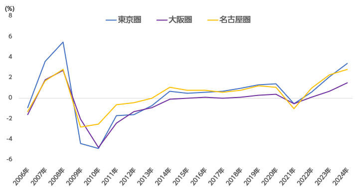 図3:3大都市圏 公示地価 前年平均変動率(住宅地)