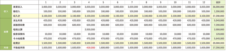 | 家賃の滯納分 | 滯納分の家賃も収入として計算 | キャッシュなし |