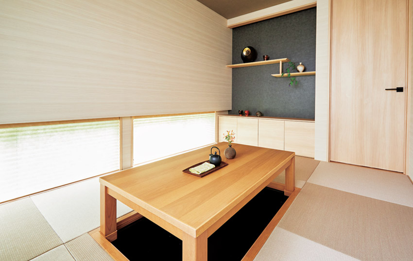 モダンな雰囲気の和室は、子どもたちの帰省時にも活用。冬に掘りごたつで鍋を囲むのが楽しみだそうです