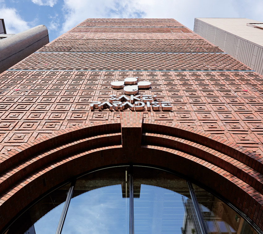 テナントビル(畫像4)、SAKE PARADISE(愛知県)のエントランス通路壁面。煉瓦の作る幾何學的な模様が、華やかな夜の世界へといざなっているようです