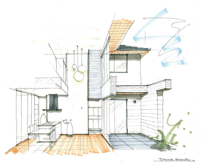 設計擔當の髭(ひげ)が描いた、ダイニングキッチンのスケッチ