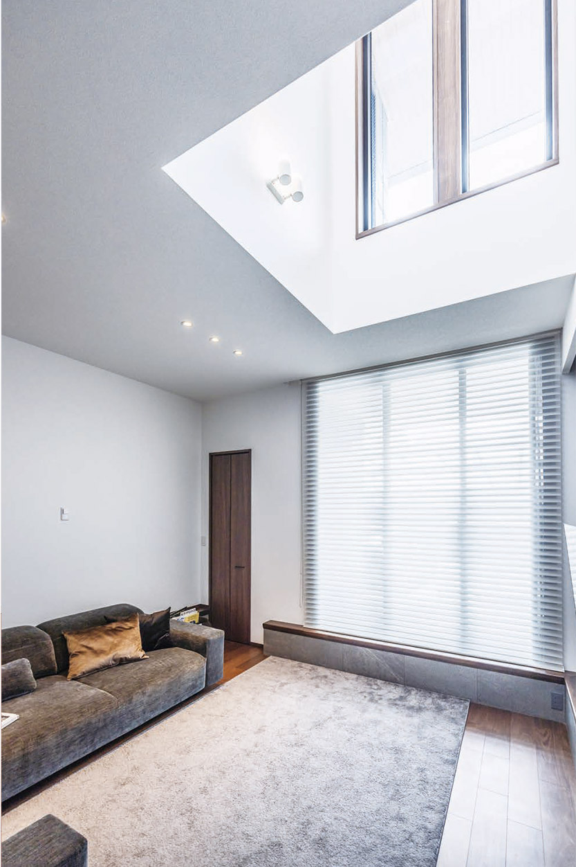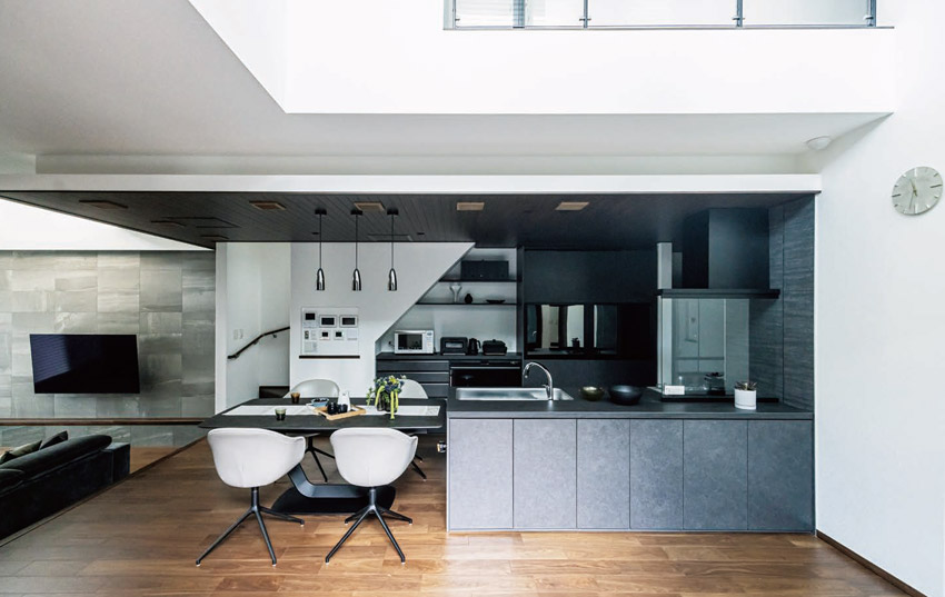 Aさまご夫妻が手に入れた土地は、駅からほど近い住宅地の一角で、人や車の往來も比較的多い場所。そこで、自然の光を取り込みつつ、近隣の建物からの視線を上手に遮ってプライバシーを保てる住まいを希望されました。ダイワハウスの設計士は、奧に長い敷地特性を生かすため、吹き抜けを効果的に設けた間取りをご提案。建物の東側に外部吹き抜けをつくり、室內の吹き抜けと連続させることで、キッチンの奧まで光を取り込める明るく快適な空間を実現しました。