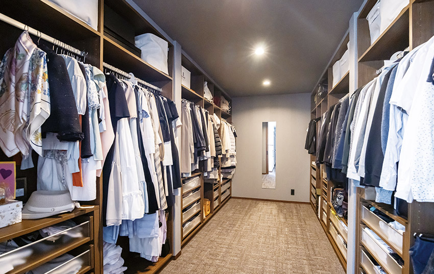 2階のウォークインクローゼットは約3.7帖もあり、大容量。家族みんなの衣類やスーツケースなどを収納できるゆとりの広さです