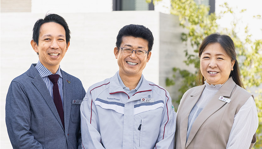 香川県にお住まいだったIさまご家族。夫の智士さんの故郷である福岡に戻ると同時に、ご新居を建築されることになりました。香川県內の住宅展示場に來場されたのをきっかけに、ダイワハウスとご契約。香川のスタッフが打ち合わせを行い、現場のある福岡の工事擔當者と密に連攜を取りながら、Iさまの理想のお住まいを形にしていきました。「3D動畫で完成イメージを確かめ、施工中も頻繁に現場の寫真で狀況を確認できたので、安心してお任せできました」と智士さん。明確にイメージしていたとはいえ、お引き渡しの際には想像以上の出來栄えに感激されたそうです。
