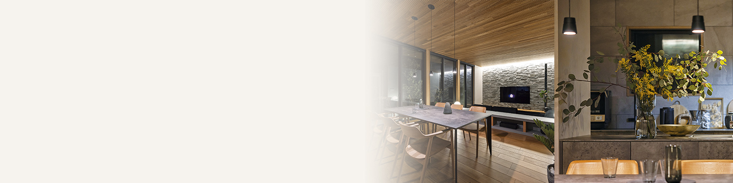 「魅せるキッチンとダイニングは統一感のある素材で」