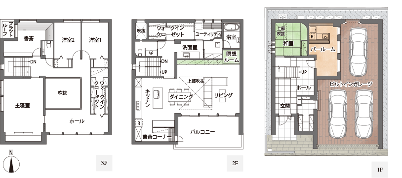Kさまが思い描いたのは、家族がゆるやかにつながれる住まい。2階と3階を貫く大きな吹き抜けは、その象徴といえます。上下階で天井材や窓のラインをそろえることで一體感が生まれ、どこにいてもお互いの気配を感じられます。「子どもたちは家じゅうを駆け回ったり、かくれんぼをしたり。吹き抜けで小さなドローンを飛ばして、この大空間を満?jiǎn)摔筏皮い毪瑜Δ扦埂工绕蓼蜟さんは微笑みます。
