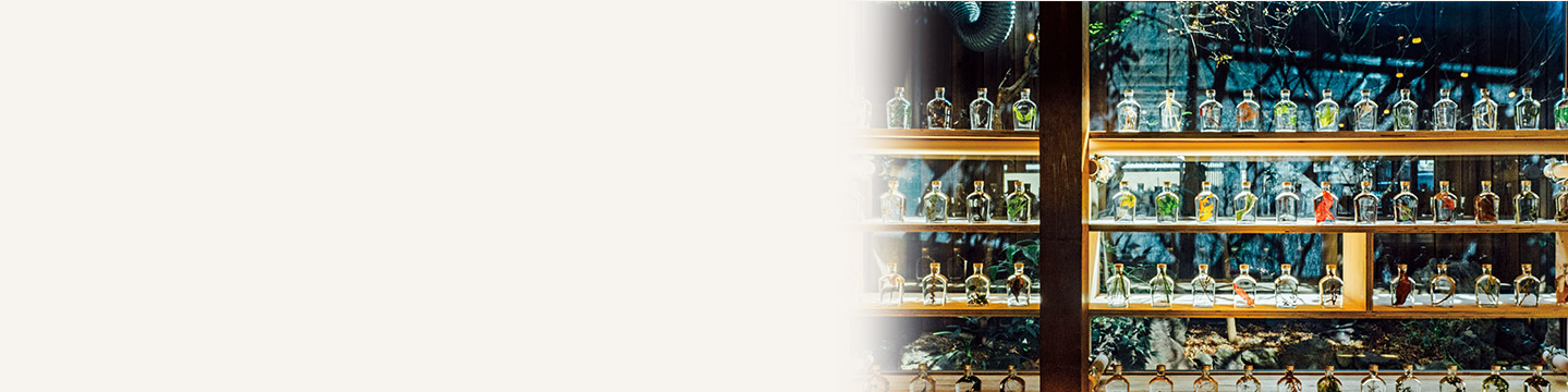 京都の街で採集した植物片を瓶詰めにして展示した、2018年のエキシビション「百の植物片」