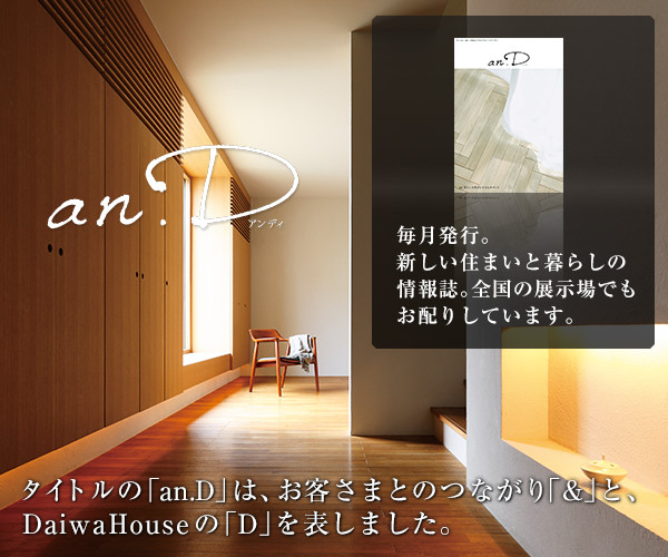 an.D アンデ?!ˉ骏ぅ去毪巍竌n.D」は、お客さまとのつながり「&」と、DaiwaHouseの「D」を表しました。毎月発行。新しい住まいと暮らしの情報誌。全國の展示場でもお配りしています。