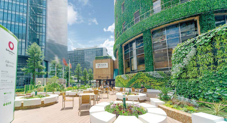 大和ハウスグループでは、商業ビルやオフィスビルをはじめとする建築物の壁面緑化や屋上緑化などの都市緑化技術を開発し、事業化。先進的な技術によって都市環境の緑化に貢獻します。このほかにも、グループ全體で緑化への取り組みを行っています。
