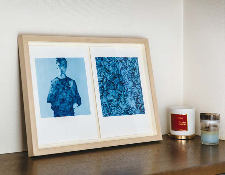 大きな作品は床に置き、立て掛けることで圧迫感なく楽しむことができます。配線コードなど、見せたくないものの前に立て掛けて隠すのも一つの手法。ポイントは額縁に入れることです。複數枚飾る時は、額縁の種類をそろえるとまとまって見えます。