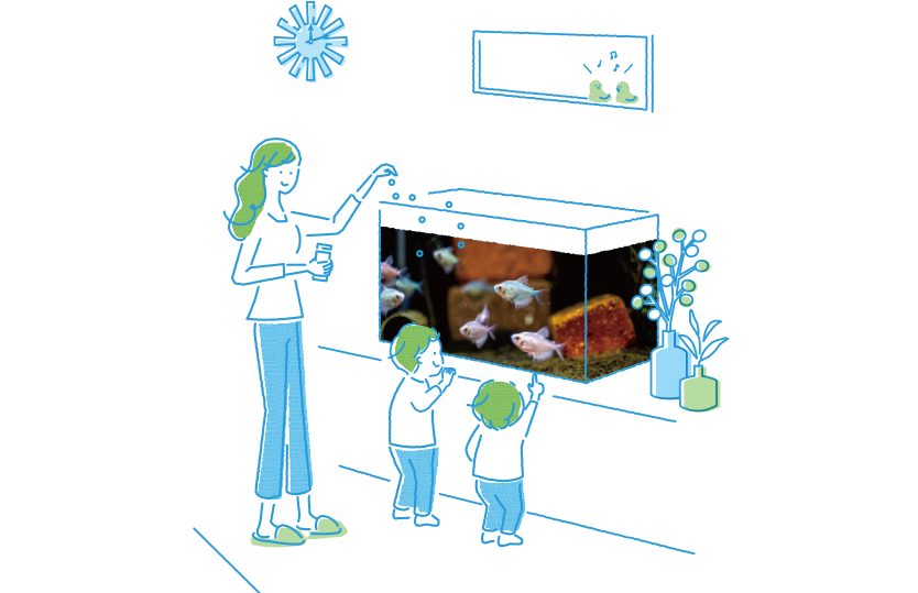 小さい子どもが素手で魚を觸ってしまわないように気を付けましょう。適度なエサやりと水換えも忘れずに。 エサのやりすぎに注意する エサは1日に1~2回、數分程度で食べ切れる量を與えましょう。うっかり多めに入れてしまった場合は、すぐに網ですくい取るなどして、放置しない方が良いでしょう。 水換えの頻度を守る 水中のカルシウムやマグネシウムは水草の栄養源になるので、見た目はきれいでも水換えは必要です。1週間に1度、3分の1ずつ水を交換しましょう。