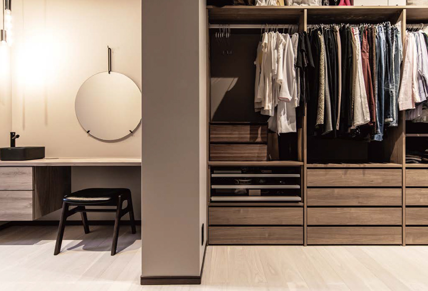 ゴルフ場のロッカールームをイメージしたウォークインクローゼット。Aさん用のドレッサーを設置し、使い勝手の良さと特別感を両立しています