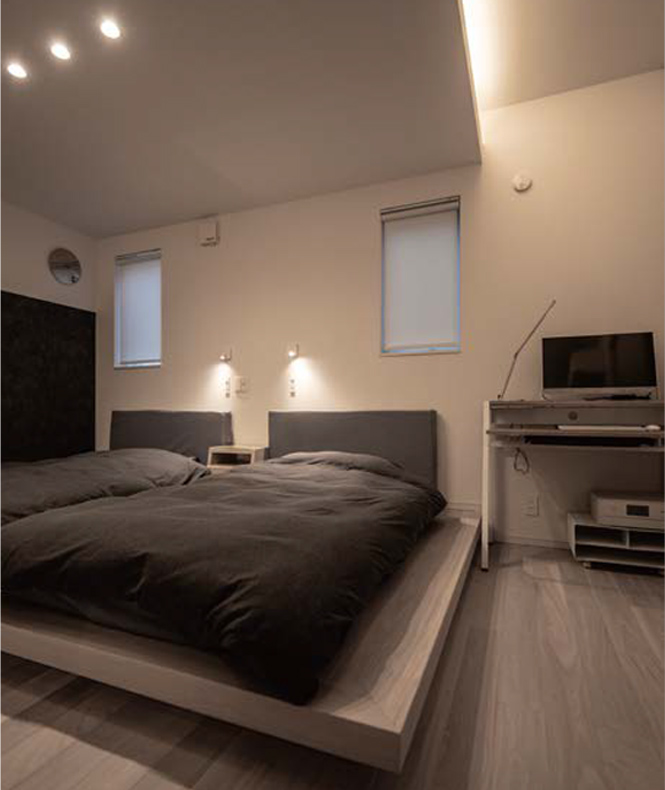 寢室にはベッドを置かず、低い重心でくつろいだ雰囲気に