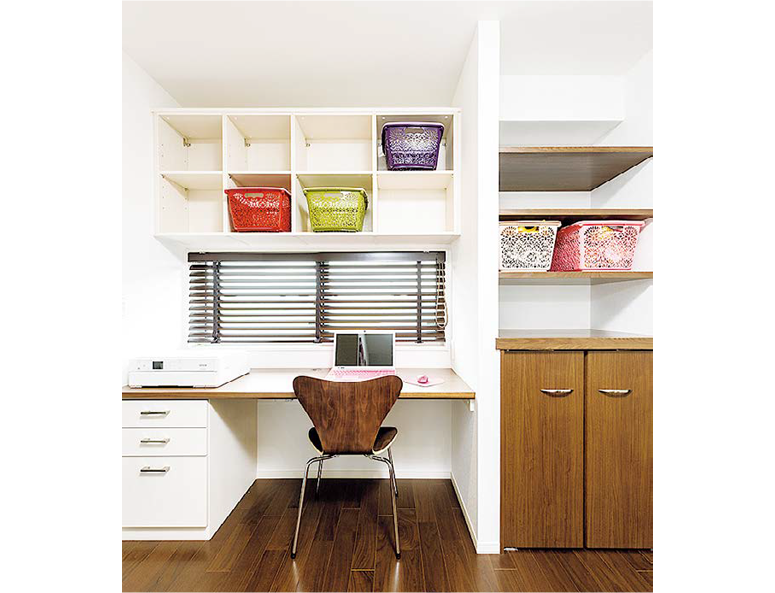 ものをグループ化して、使用頻度に合わせて収納します。よく使う道具は立ったまま手が屆く範囲にしまいましょう。キッチン近くにユーティリティがあれば、レシピを見たり家計簿をつけたりと時間を有効に使えます。テレワークをする時や、お子さんが自宅學習をする時にも活用できます。
