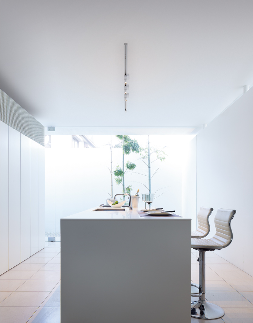 クリエイティビティを刺激する創作の場には、やさしい自然光を取り入れて。素材を際立たせるミニマルなインテリアに、存在感を抑えたシンプルな照明器具が似合います