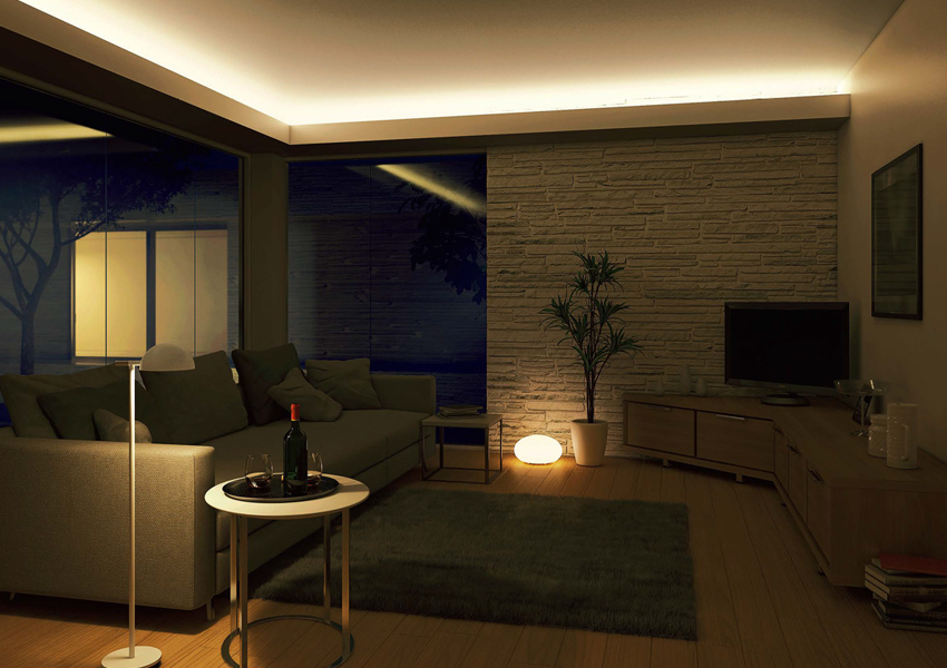 リビングや玄関ホール、寢室などに間接照明を取り入れたいと考えている方は多いのではないでしょうか。間接照明はまぶしい光が直接目に入らないのでリラックスした雰囲気をつくるのに適しており、照らす方向への空間の広がりも生まれます。