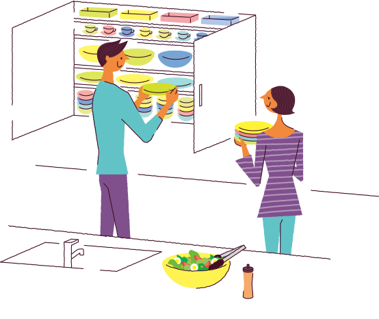 食器棚は棚板を増やし、食器の高さをそろえて重ねすぎない収納を心がけましょう。特によく使うものは、手の屆きやすい目の高さから膝の高さに。西口さんはカップ&ソーサーを1客ずつセットして取り出しやすく収納しています。來客用の食器を使わずに棚の奧に眠らせておくのは、食器自體も収納スペースももったいないと、普段から積極的に使っているそうです。