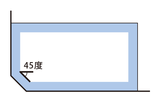 コーナー部の斜め45度外壁によって、隅切り角地や変形敷地などを余すところなく活用できます。