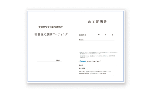 ダイワハウス指定の施工業者が施工を行います。また、確実に施工完了した証しとして、施工証明書を発行。コーティングは目に見えませんが、安心してお住まいいただけます。