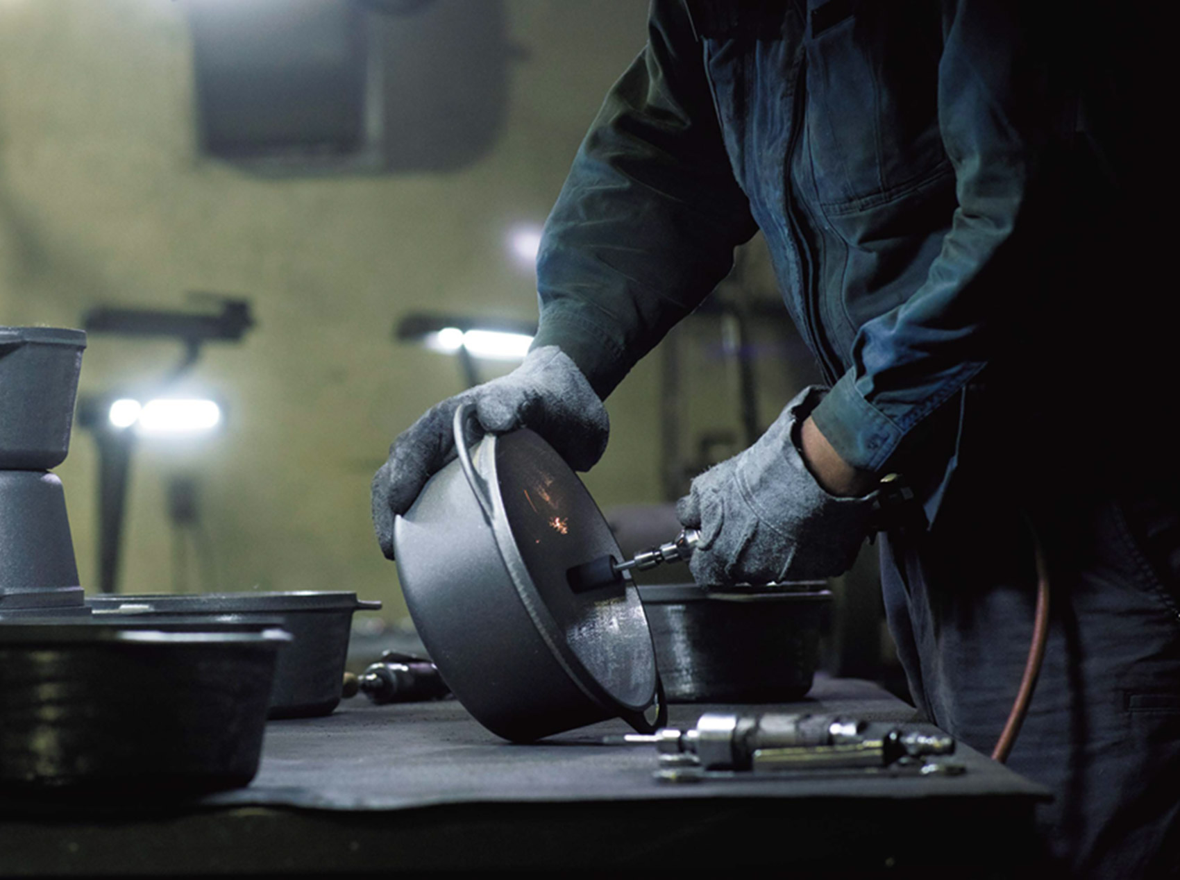 熟練した職人の手仕事が、無水調理に欠かせない密閉性をかなえる