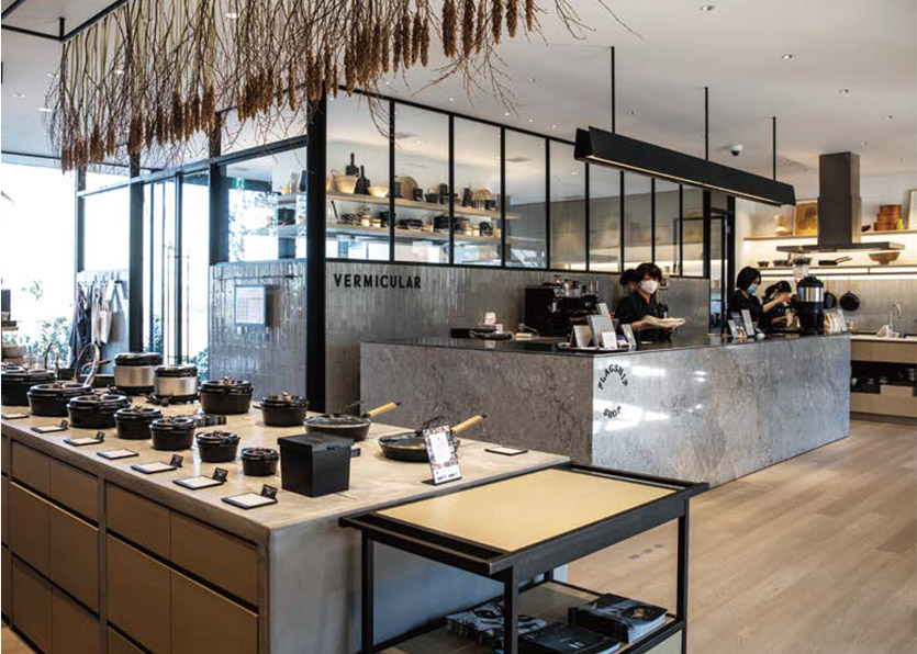 ここを訪れる人に提供するのは、「最高のバーミキュラ體験」。多くの人にバーミキュラで作った料理のおいしさを伝え、ブランドの世界観とメイド?イン?ジャパンのものづくりを體感していただくための施設です。ダインエリアのレストランは連日予約で埋まるほどの盛況ぶり。バーミキュラで焼いたパンや、煮込んだカレーなどを味わえるベーカリーカフェには開店前から近隣の家族連れが列をつくります。スタジオエリアには、料理教室が開かれるキッチンスタジオや、世界のトップシェフのために、専用バーミキュラを開発するラボラトリーも設けられ、バーミキュラを通して料理する楽しさや手料理のすばらしさを伝えています。