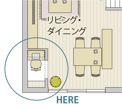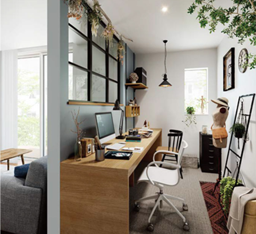 室內(nèi)窓でリビングやダイニングとつながり、家族と程よい距離感を保ちながら仕事に取り組めます。集中したいときはドアを閉めて気持ちを切り替え。家事スペースとしても活用していただけます。