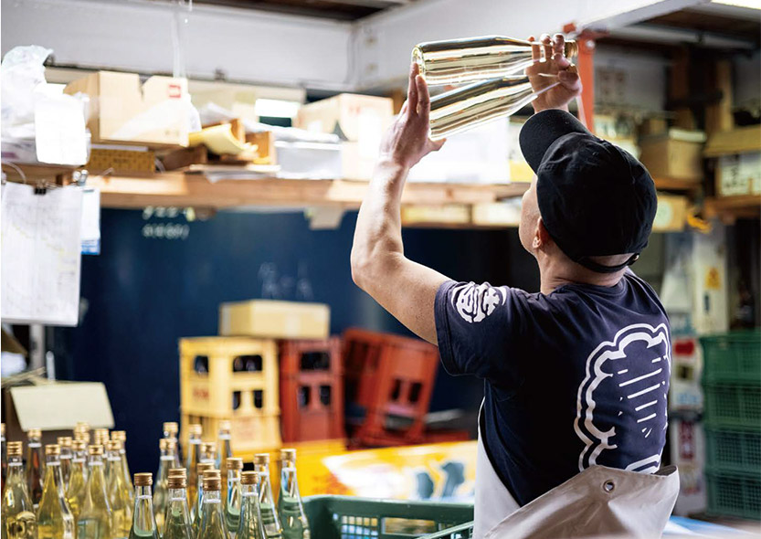 瓶詰めをした後、不純物が入っていないか最終確認をする蔵人