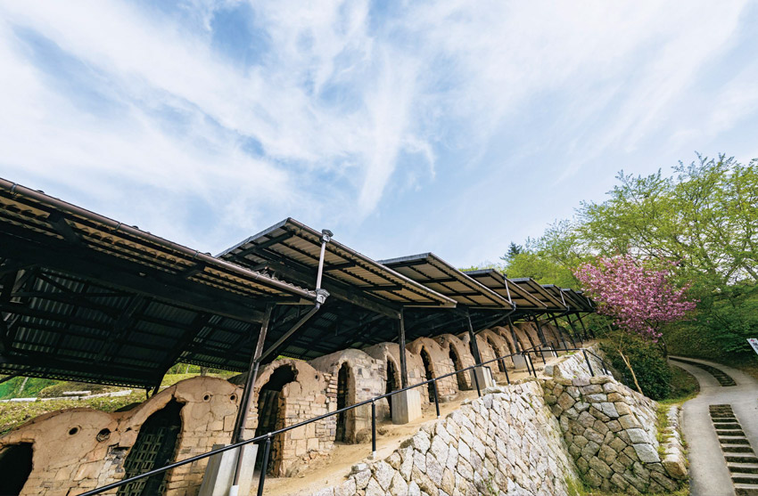 斜面を利用して築かれた16連房の登り窯は、下から上へと火が上がる原理を利用して効率良く熱を伝えていくもので、昭和40年代まで活躍?,F在も國の登録有形文化財として大切に保存されています