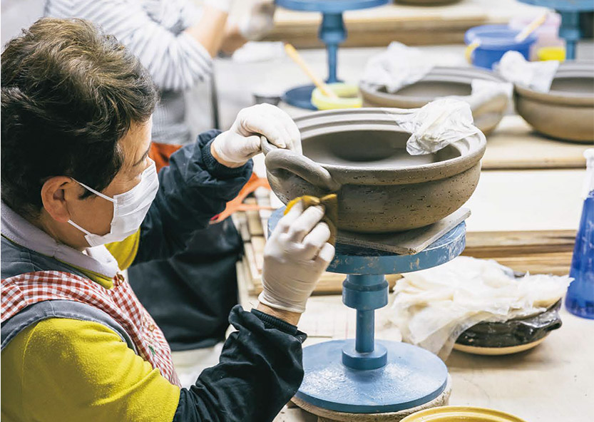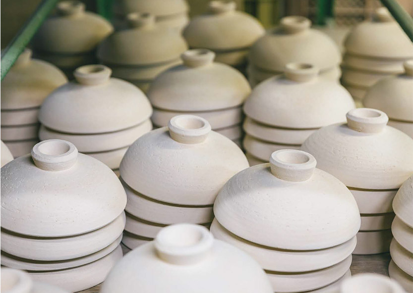 「日本各地に陶磁器の産地はたくさんありますが、地元産の天然の陶土で土鍋を作れるのは伊賀だけです」と八代目當主の長谷康弘さん。産地としての規模は小さくても、その特徴を最大限に活用するものづくりを誇りに思っておられます。
