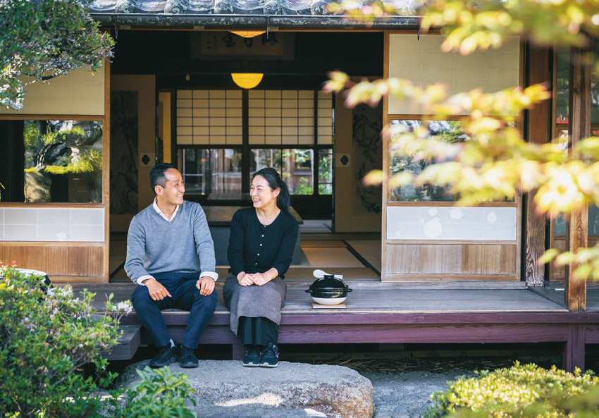 主屋の縁側で談笑するご夫妻??岛毪丹螭蓼煊盲亢B200余年の屋敷は、イベント時などに公開されています