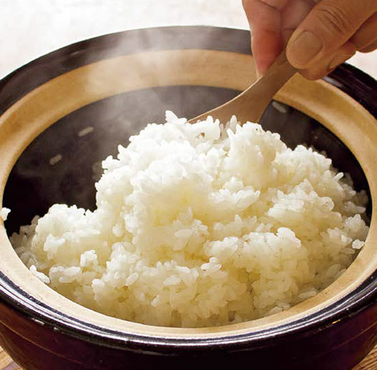 土鍋のご飯が美味しいとは知っていても、火加減が難しく吹きこぼれて後始末が大変というイメージが伴うもの。かまどさんはそんな常識を覆し、手に取った人に驚きと感動を與えます。お米と水を入れて中強火にかけ、穴から蒸気が出たら火を止めてしばらく蒸らすだけ。至って簡単な手順で、至福のご飯がいただけます。