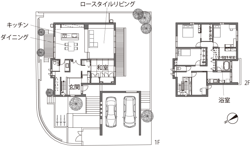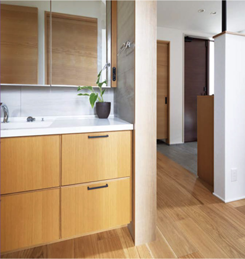 リビングをできる限り広くとり、家族で過ごす時間を快適にしたいとお考えになったHさま。ご夫妻と長女、3人それぞれの個室と浴室を2階にレイアウトし、1階はリビング、DK、和室をゆったりとつなげて広々と計畫されました。