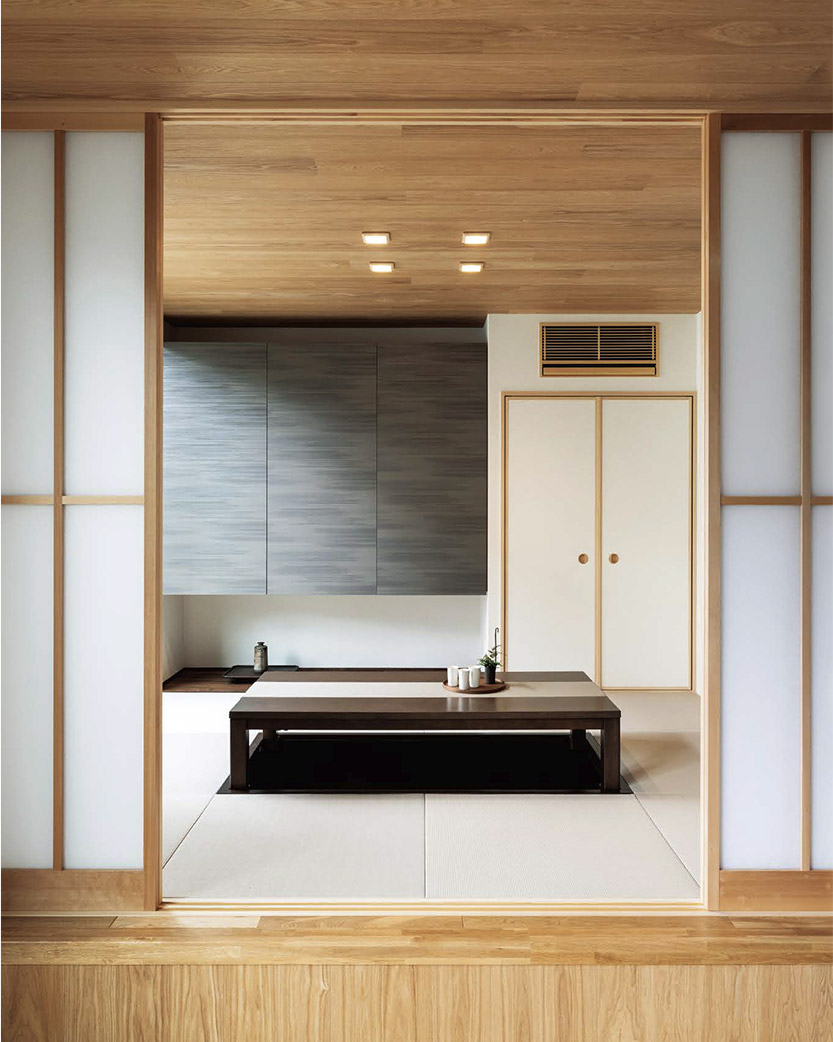 和室はリビングと連続させつつも床の高さを変えることで、少し特別感のある空間に。琉球畳や太鼓張りの吊り押入、モダンな障子などによって現(xiàn)代的な和のデザインを表現(xiàn)されました。
