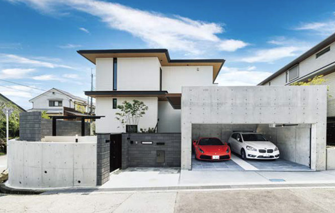 暮らしやすさを第一に考えながら、美しさやセンスの良さを追求したHさま邸。2臺の車を安全に駐車できるガレージはRC(鉄筋コンクリート)造です。構(gòu)造上は別の建物ですが、庇(ひさし)によって雨に濡れることなく快適に移動が可能。週末の相棒である愛車の姿を、外出時や帰宅時にも見て楽しむことができます。