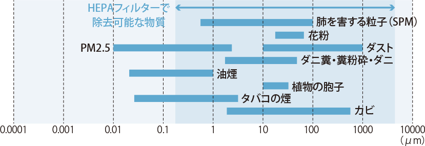 HEPAフィルターの一般的な性能を表す參考資料です。実使用空間での効果を示すものではありません。