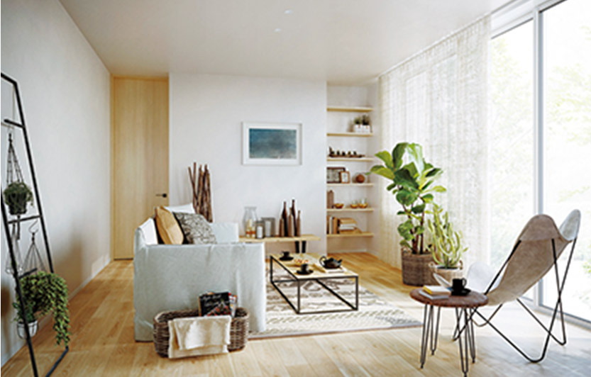 ウイルスの抑制効果が実証※4された「吸著性光觸媒コーティング」は、ご入居前に家具やカーテンを含めた屋內をすべてコーティング。家全體をまるごと抗ウイルス化できます※5。