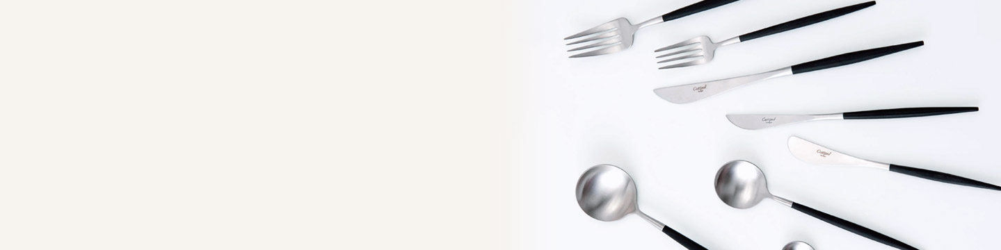黒い樹脂の持ち手に、光沢を抑えたステンレスのシルバー。そして無駄のないモダンなフォルム。一度目にすると忘れない獨特の存在感でテーブルを彩るフォークやスプーンを、高級レストランなどで手に取ったことがある人も多いのではないでしょうか。このカトラリーブランドの名は「クチポール」。ポルトガル(po)のカトラリー(cut)の會社(L)という意味から名付けられたクチポールは、その名前が表す通りポルトガルを代表する世界的ブランドです。寫真はGOA(ゴア)シリーズといい、アイコニックなモデルとして広く知られています。