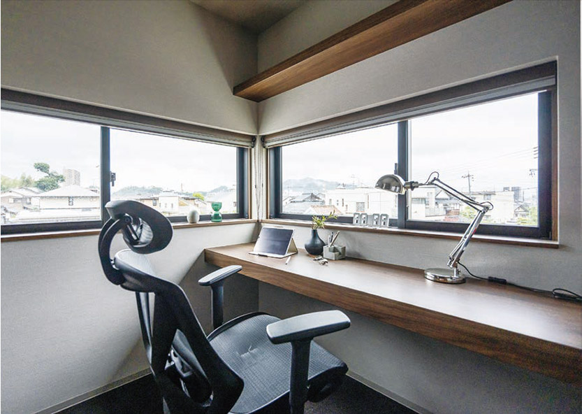 書庫はKさんがテレワークをしたり、試験勉強(qiáng)をしたりするための場所。デスクワークの合間に目を休めるための景色にもこだわりました