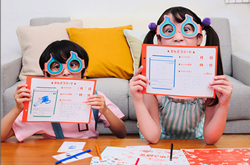 妖怪を見つけたら、日付や観察記録をこの「かんさつシート」に記入しよう。カードを差し込んでシートの完成だ!