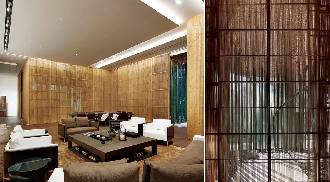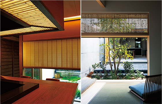 富山?金沢方面の町家に見られる、竹を細く割り、利用した伝統的意匠??臻gを區切りながらも、向こう側が透けて見え、空間を広く感じさせることができます。