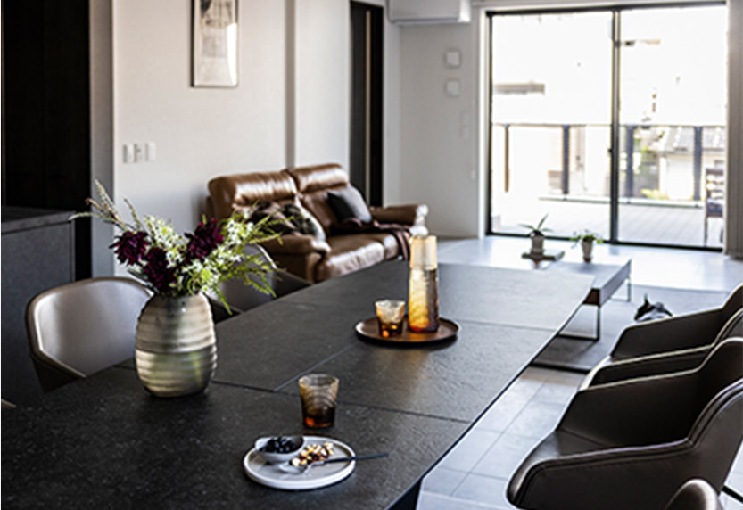 2階LDKはモダンなインテリア。もともとお持ちの家具を上手にコーディネートし、くつろぎとラグジュアリーを両立する空間に