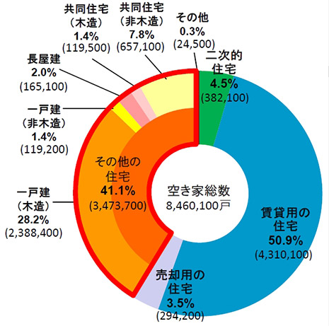 次に多いのが、売買や賃貸などの目的を持たないその他の住宅が41.1%となり、ここが一番の問(wèn)題點(diǎn)と言えるでしょう。