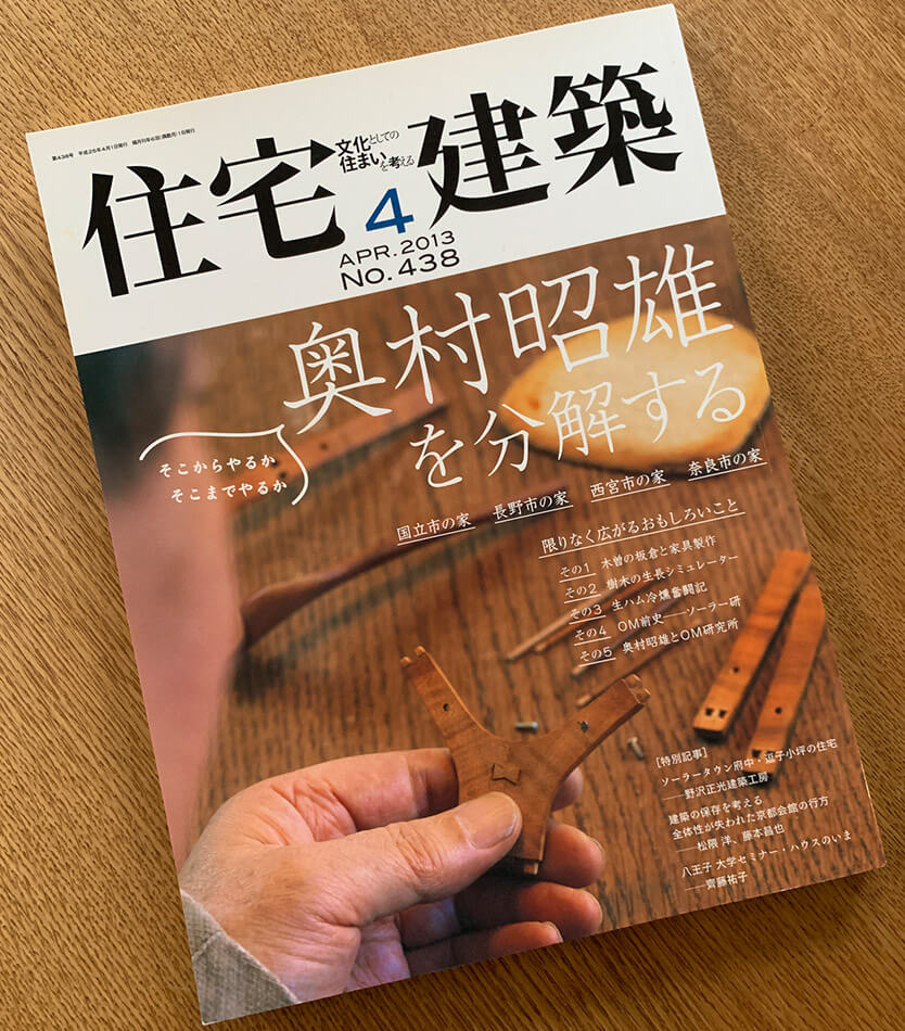 『住宅建築』の奧村昭雄特集。伊禮さんが奧村さんの家具工房を取材した