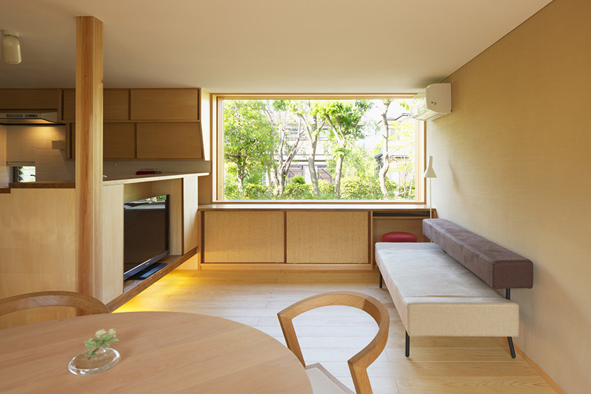 伊禮智設計室(伊禮智、一場由美)設計の『守谷の家』。造り付け家具の足元を浮かせると部屋が広く感じる 寫真:西川公朗