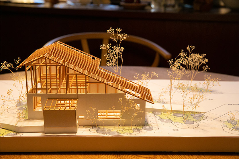 逆に、「あなたの家はこれです」と自信を持って言えるものを提示できれば、大抵がいい建築になります。だから私は、100分の1のサイズの平面図、配置図、立面図、模型、インテリアのスケッチなどを用意してプレゼンテーションに臨みます。