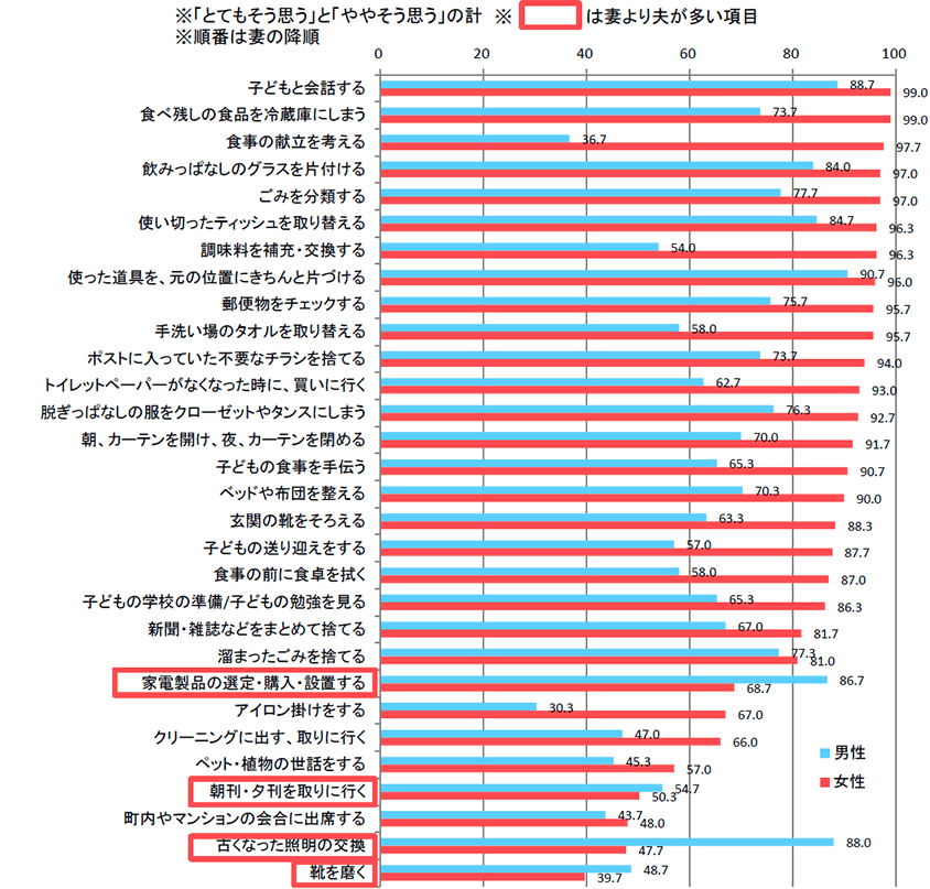 これでも「3割參加」?「家事を?qū)g際にやってる」割合は、やっぱり妻が「9割」