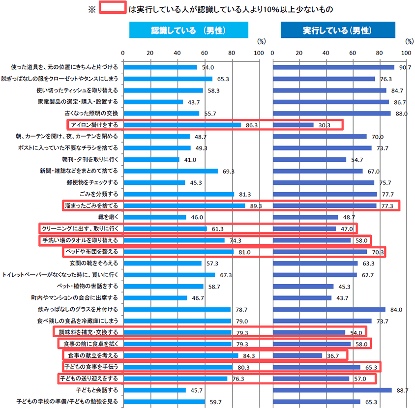 夫が家事だと認(rèn)識(shí)していることと行っていること